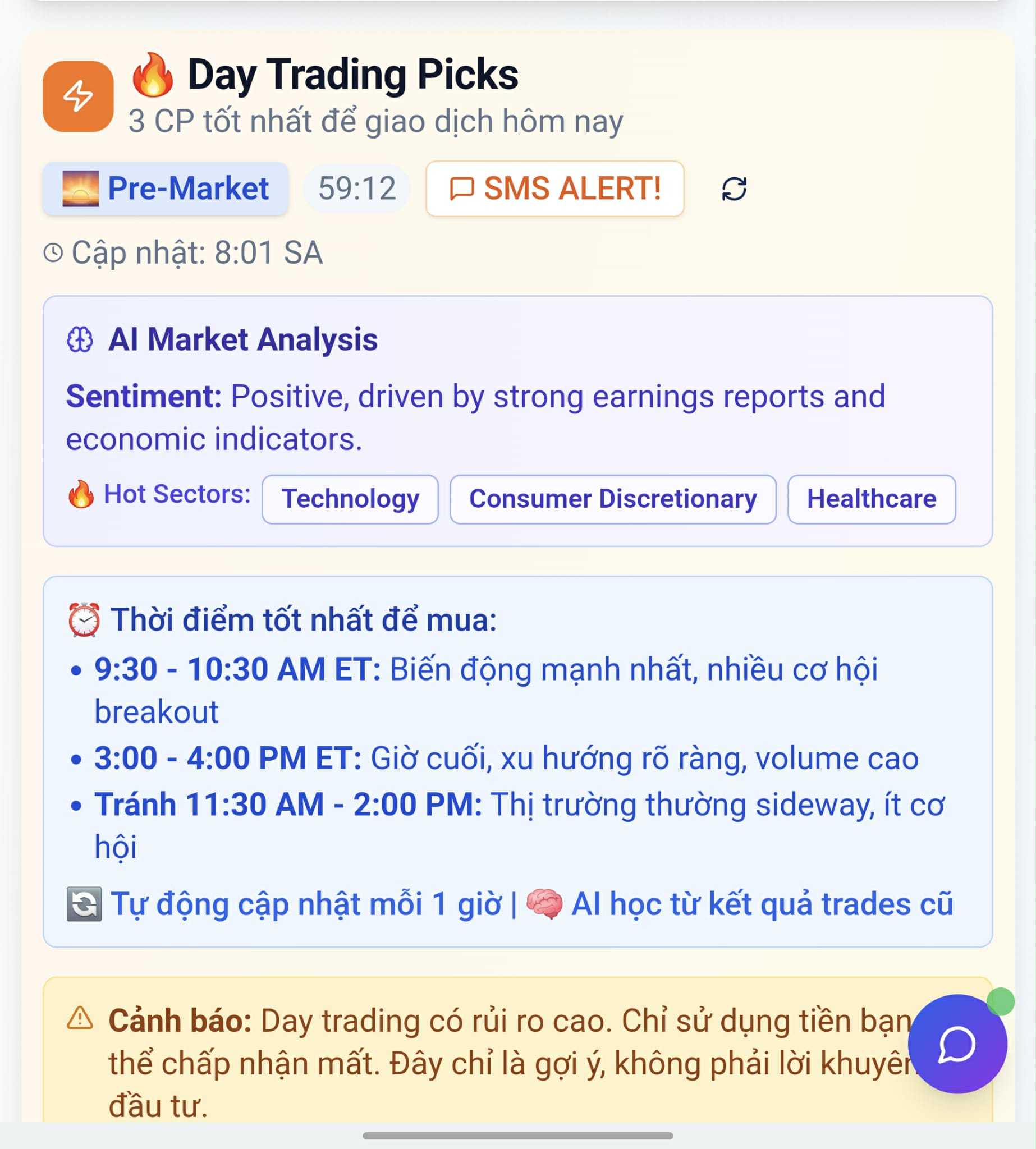 “Trước khi dùng ĐiệpViên007® , tôi phải dựa vào các nguồn tin tức để đưa ra quyết định đầu tư — vừa tốn thời gian, vừa ngẫu nhiên và dễ bị cảm xúc chi phối. Giờ đây, mỗi quyết định đều đi kèm với phân tích AI thận trọng và logic, chắc chắn đã giúp tỷ lệ thắng khi giao dịch của tôi tăng lên. Tôi thật sự rất thích sản phẩm này! Cảm ơn ĐiệpViên007®”
